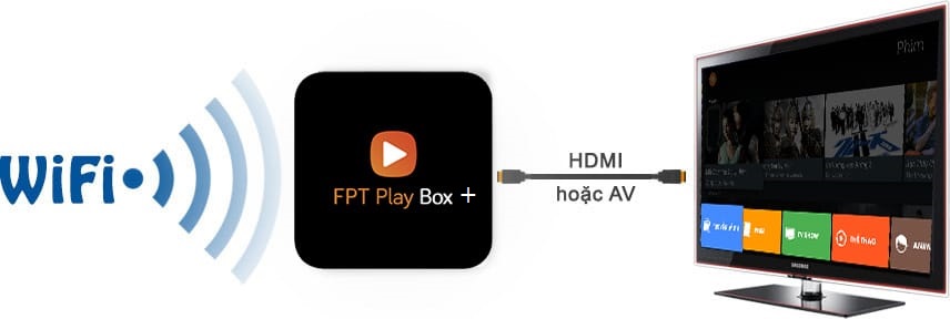 Cài đặt chỉ mất 3 phút, chỉ cần cắm lên tivi qua cổng HDMI hoặc AV, đồng thời kết nối với internet qua Wifi hoặc mạng LA