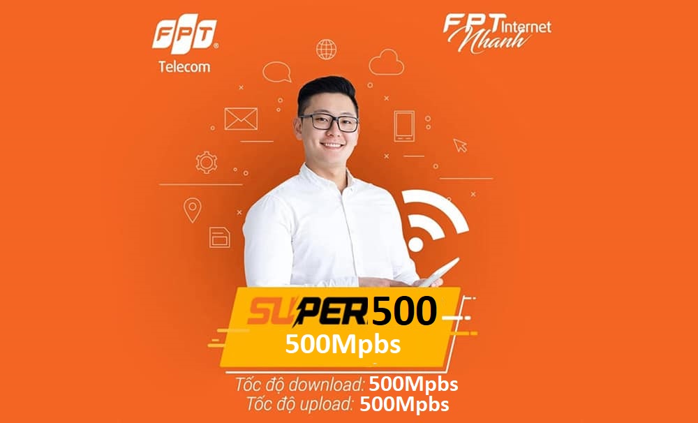 Gói super 500 của FPT có thể hiểu nôm na là tốc độ đường truyền FTTH ( còn gọi là đường truyền cáp quang ) lên đến 500Mpbs, nhưng từ khi dịch bùng phát FPT đã có nâng cấp băng thông miễn phí giá cước không đổi khi lắp mạng fpt đễ hỗ trợ khách hàng trong mùa dịch điển hình là gói 500Mb FPT được nâng cấp lên thành 550Mb nhằm đáp ứng nhu cầu sử dụng nhiêu của khách hàng trong mùa dịch.